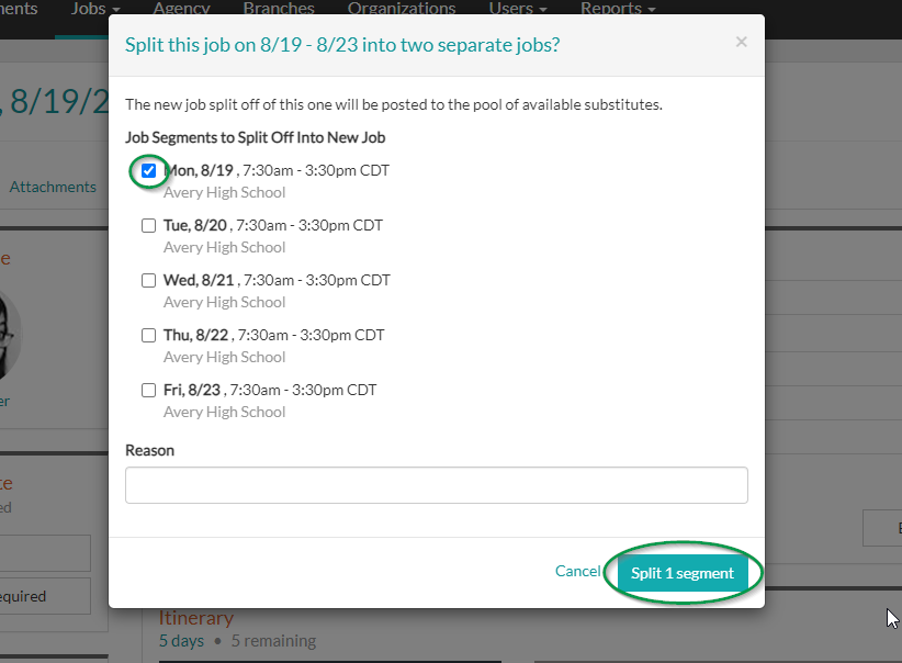 2. Select the job segment(s) to split from the original job and click Split Segments.